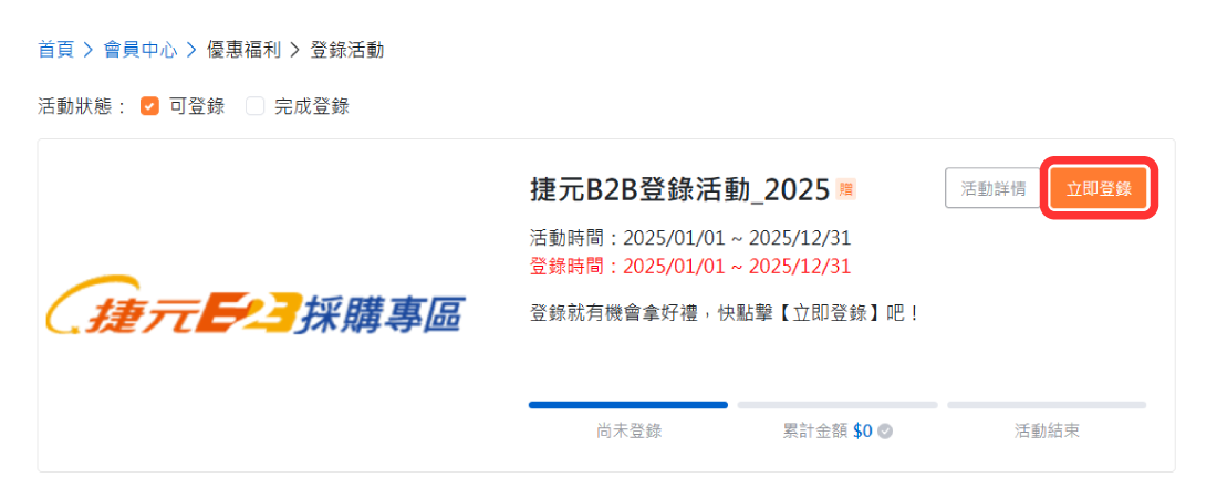 ➂ 跳轉至「登錄活動」列表頁,點擊「立即登錄」